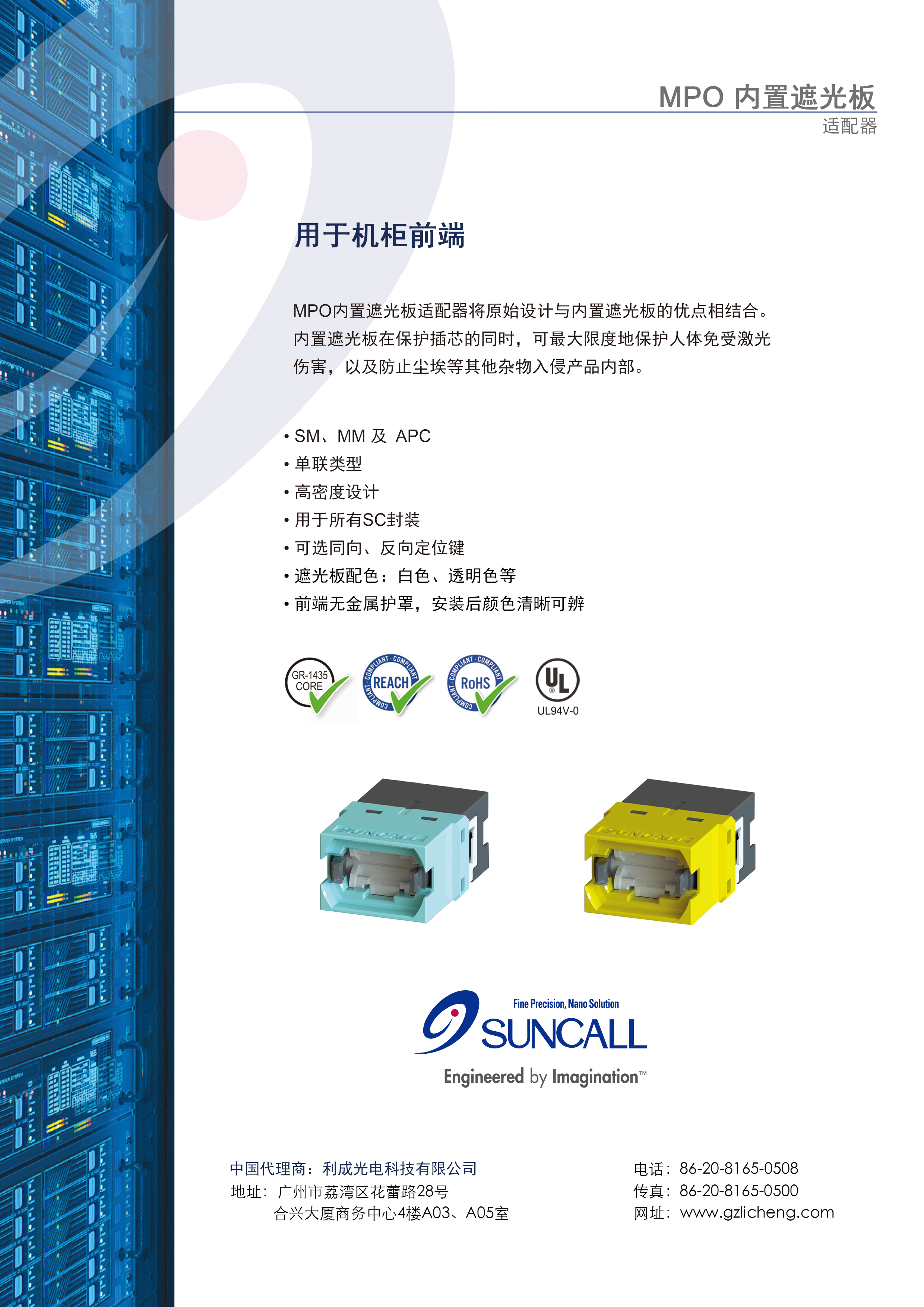 SUNCALL 首頁 > 技術支持 > 產品單張 > SUNCALL MPO 內置遮光板適配器 來源:本站作者:admin日期:2020/2/20閱讀 0 上一篇:多聯(lián) LC 內置遮光板適配器 下一篇:MPO 2.0MM 短尾連接器